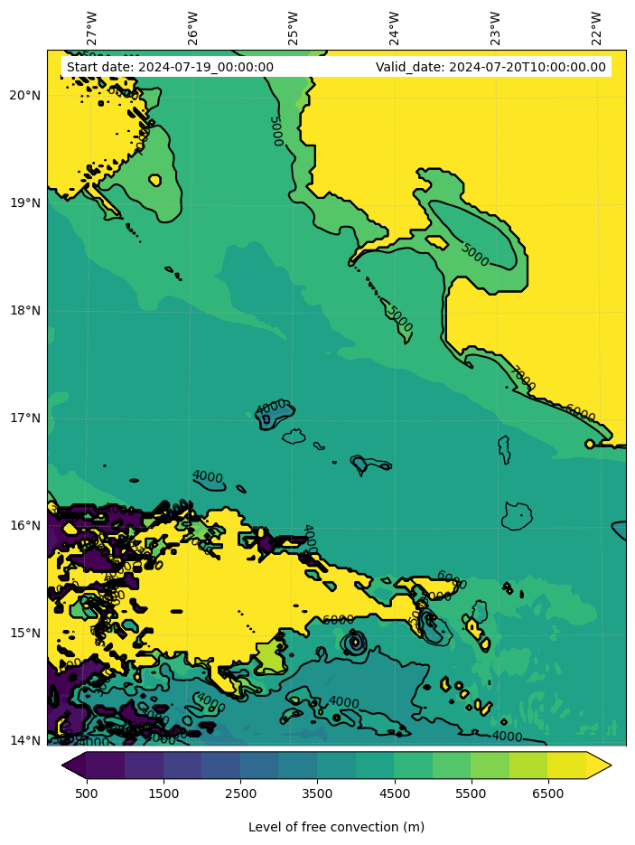 • Level of free convection (m)