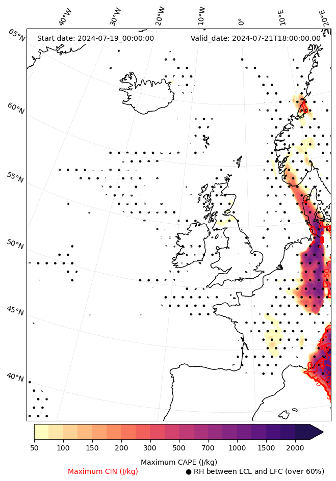 • Maximum CAPE (J/Kg)