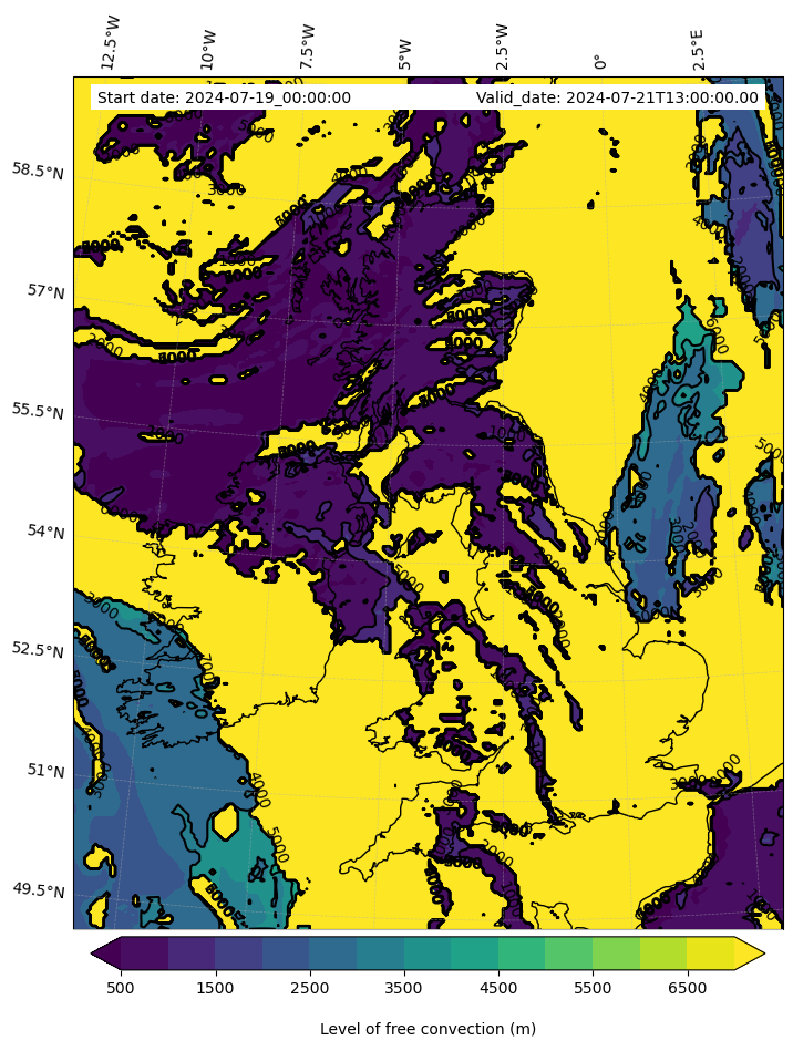 • Level of free convection (m)