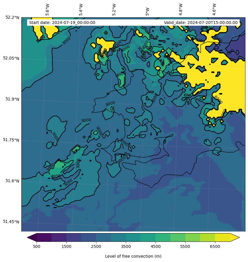 • Level of free convection (m)
