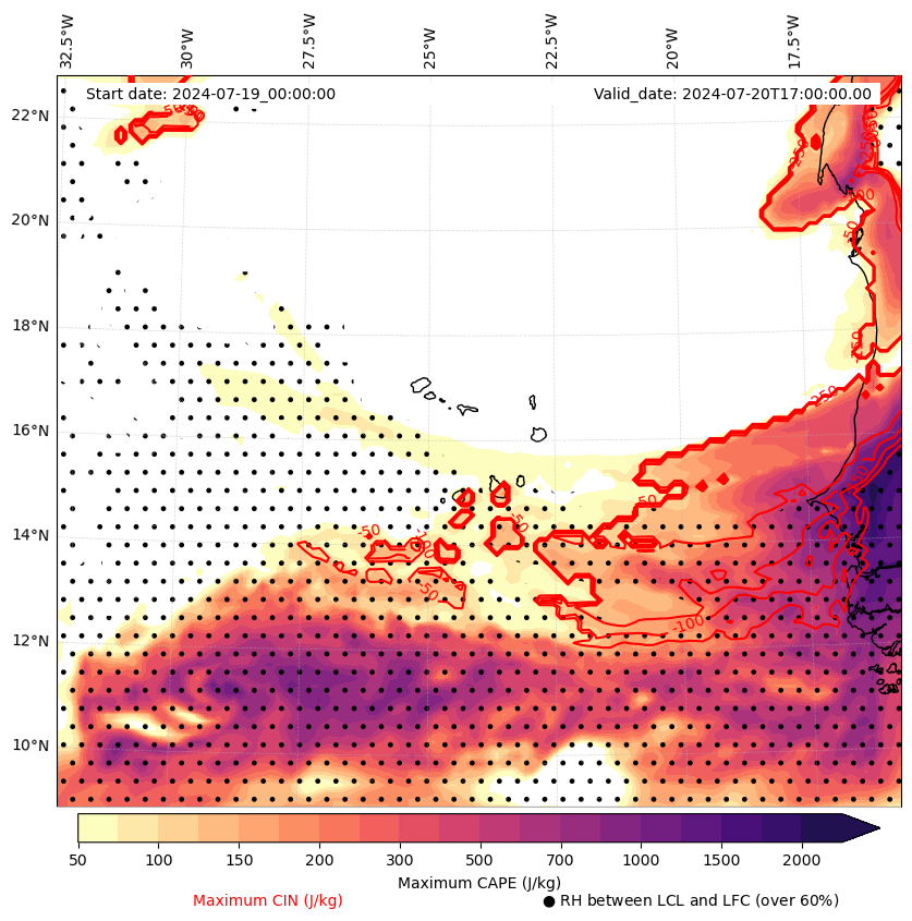 • Maximum CAPE (J/Kg)