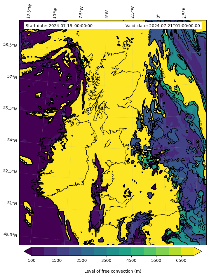 • Level of free convection (m)