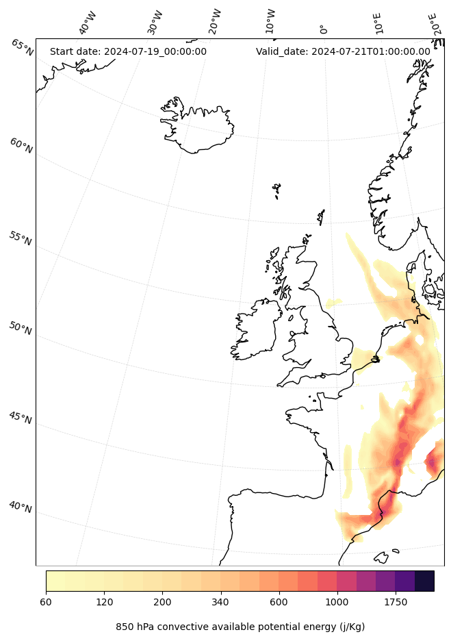 - Maximum CAPE (J/Kg)