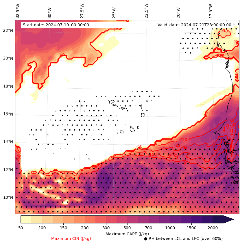 • Maximum CAPE (J/Kg)
