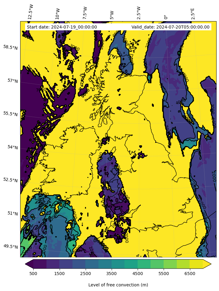 • Level of free convection (m)