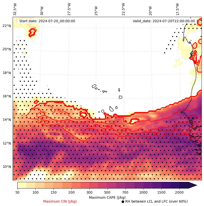 • Maximum CAPE (J/Kg)