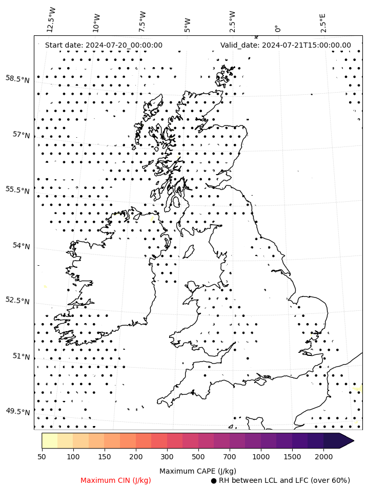 • Maximum CAPE (J/Kg)