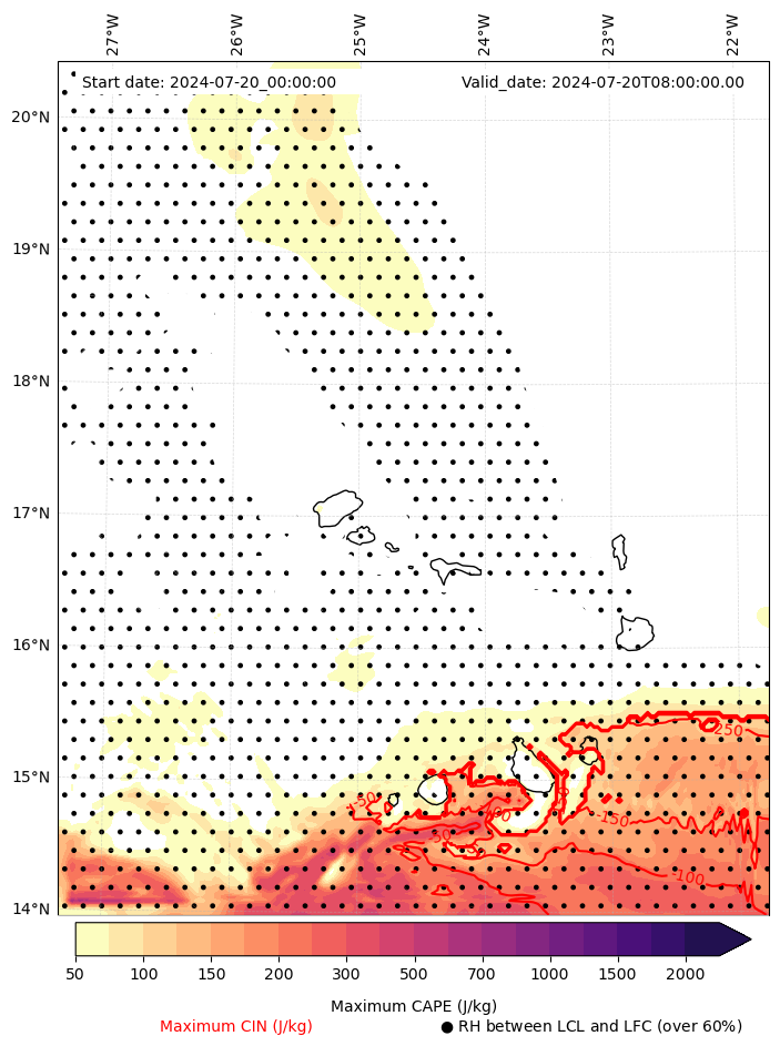 • Maximum CAPE (J/Kg)