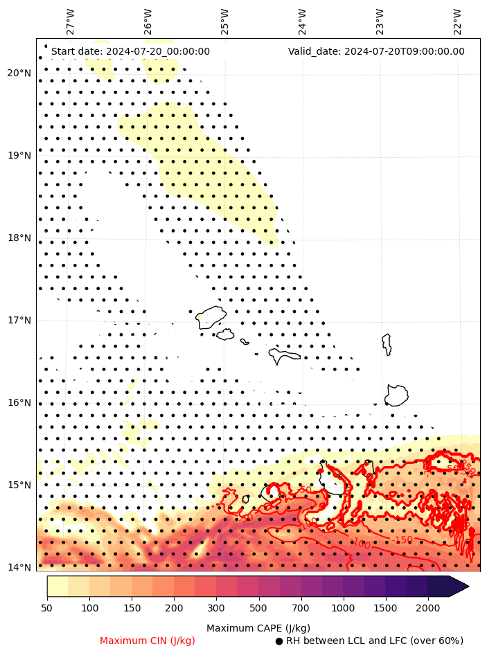 • Maximum CAPE (J/Kg)