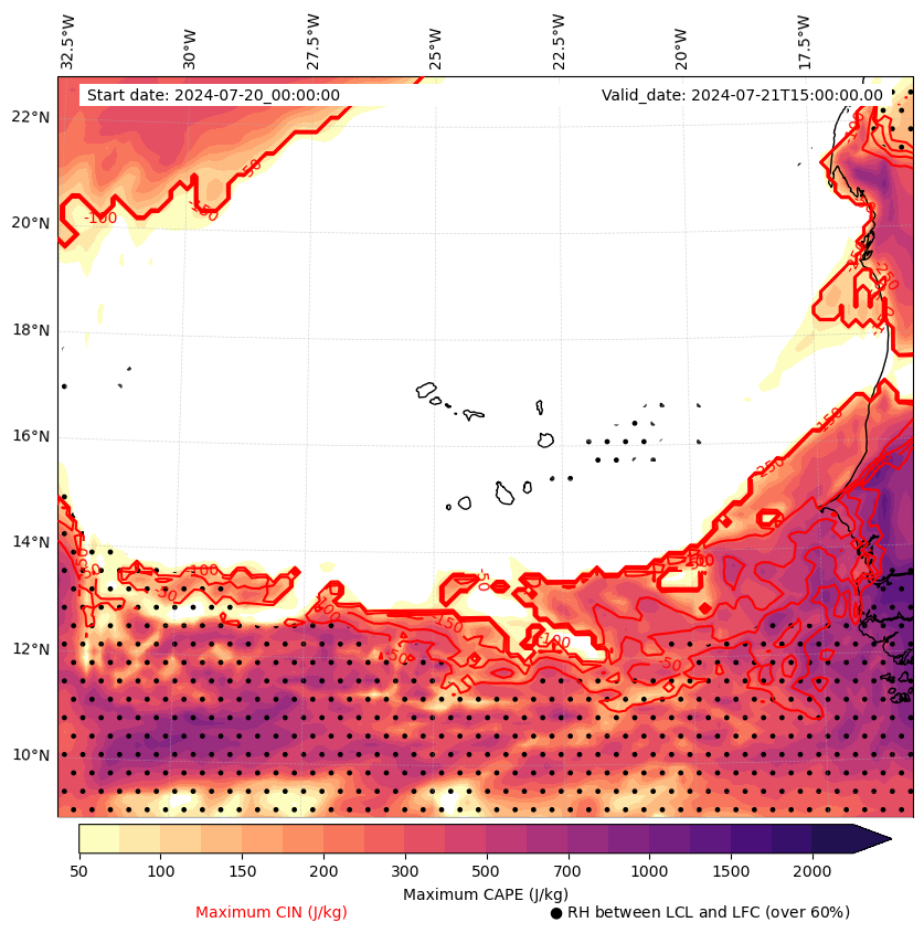 • Maximum CAPE (J/Kg)