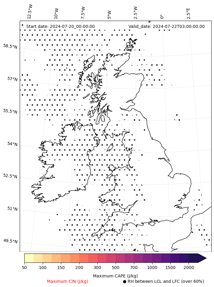 • Maximum CAPE (J/Kg)