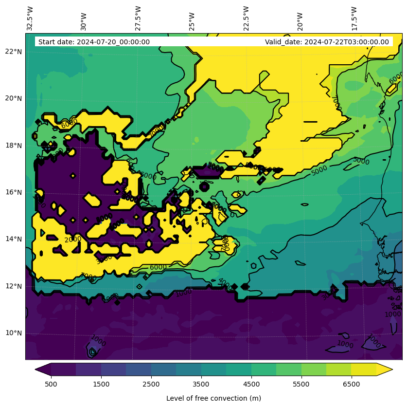 - Level of free convection (m)