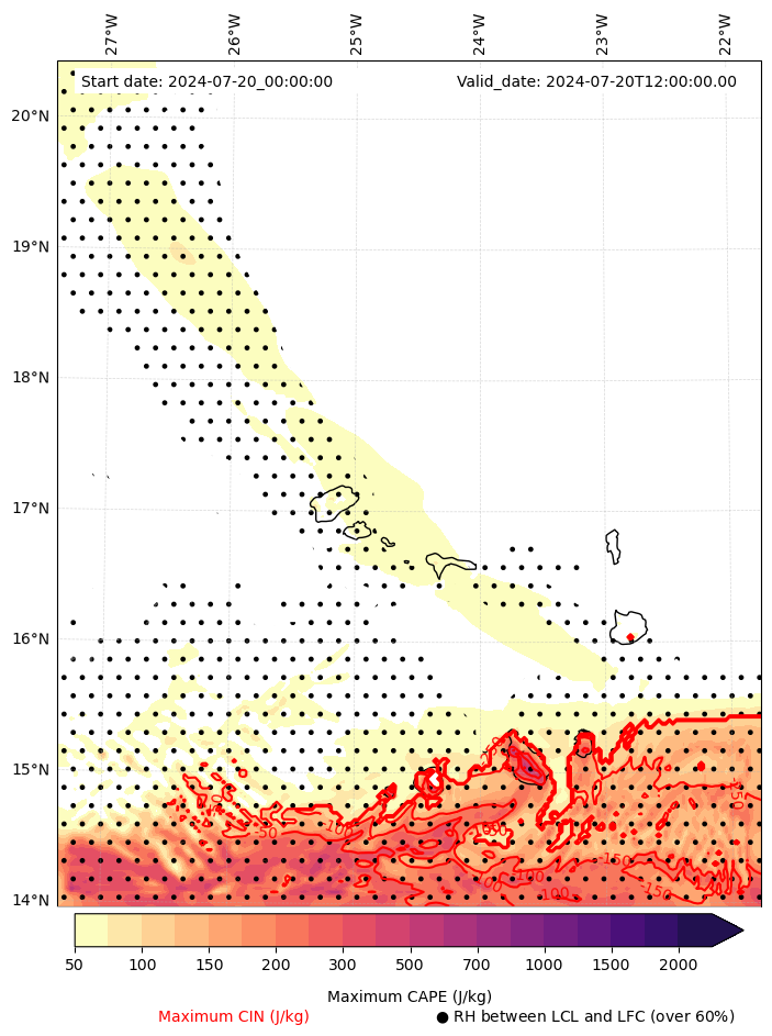 • Maximum CAPE (J/Kg)