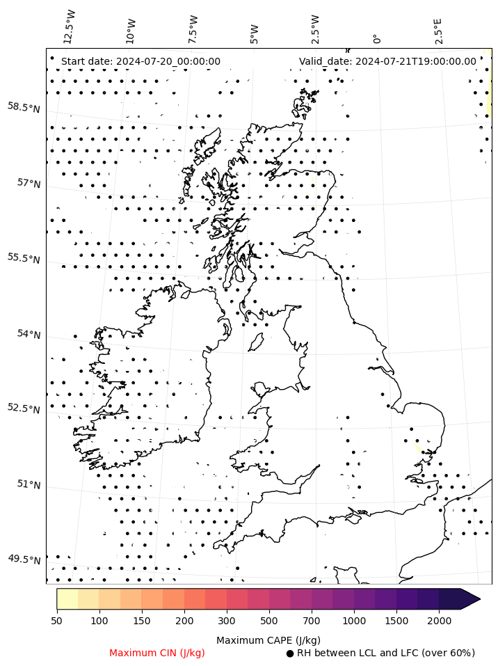 • Maximum CAPE (J/Kg)
