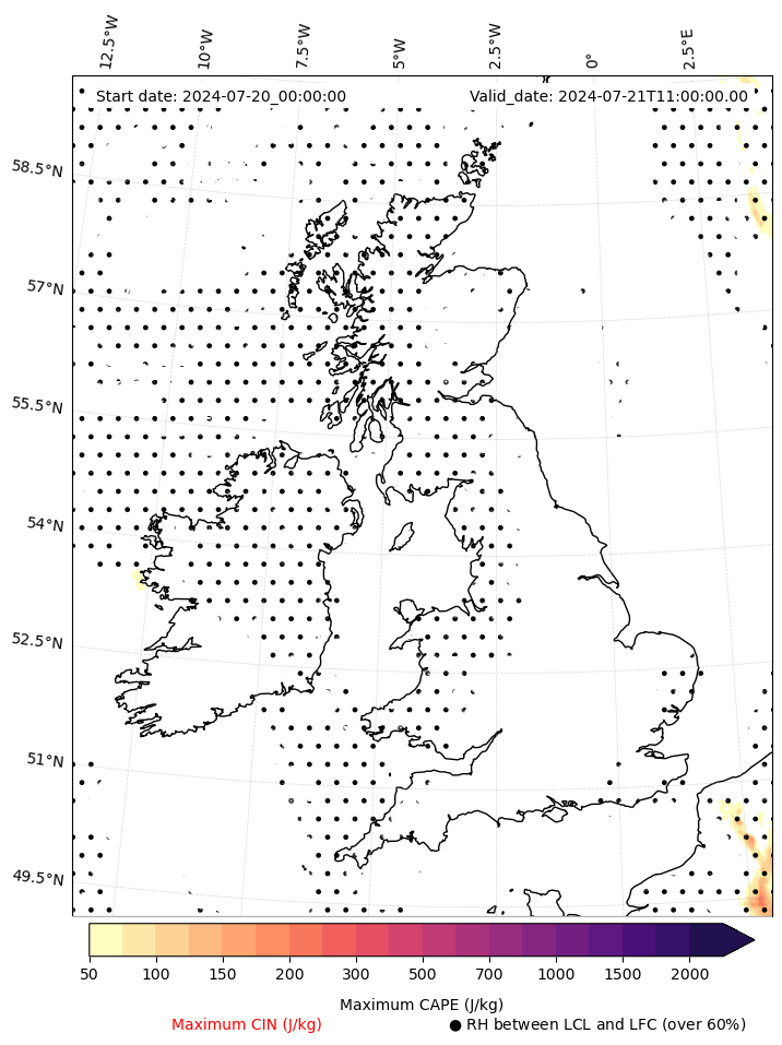 • Maximum CAPE (J/Kg)