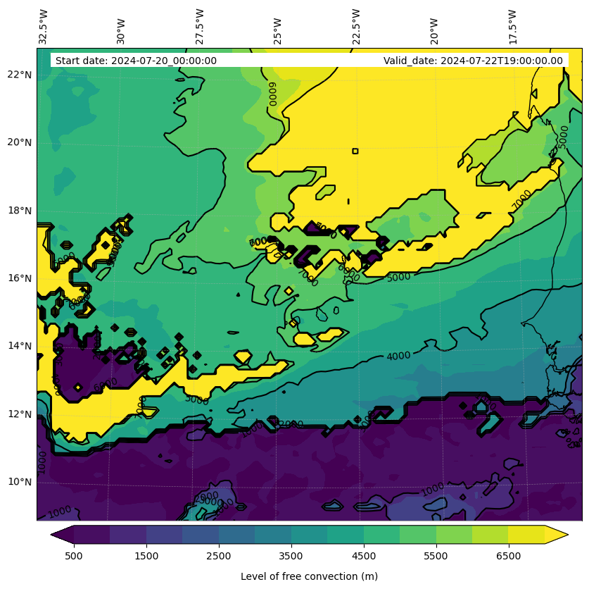 - Level of free convection (m)