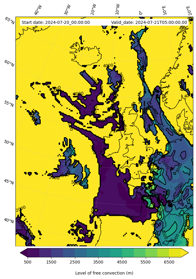 - Level of free convection (m)