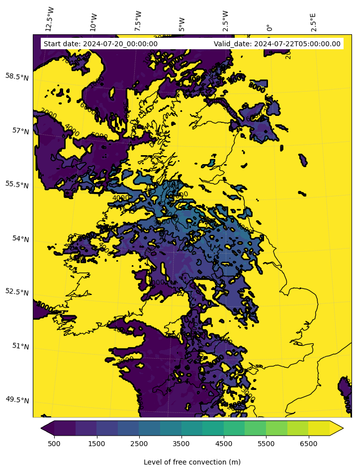 • Level of free convection (m)