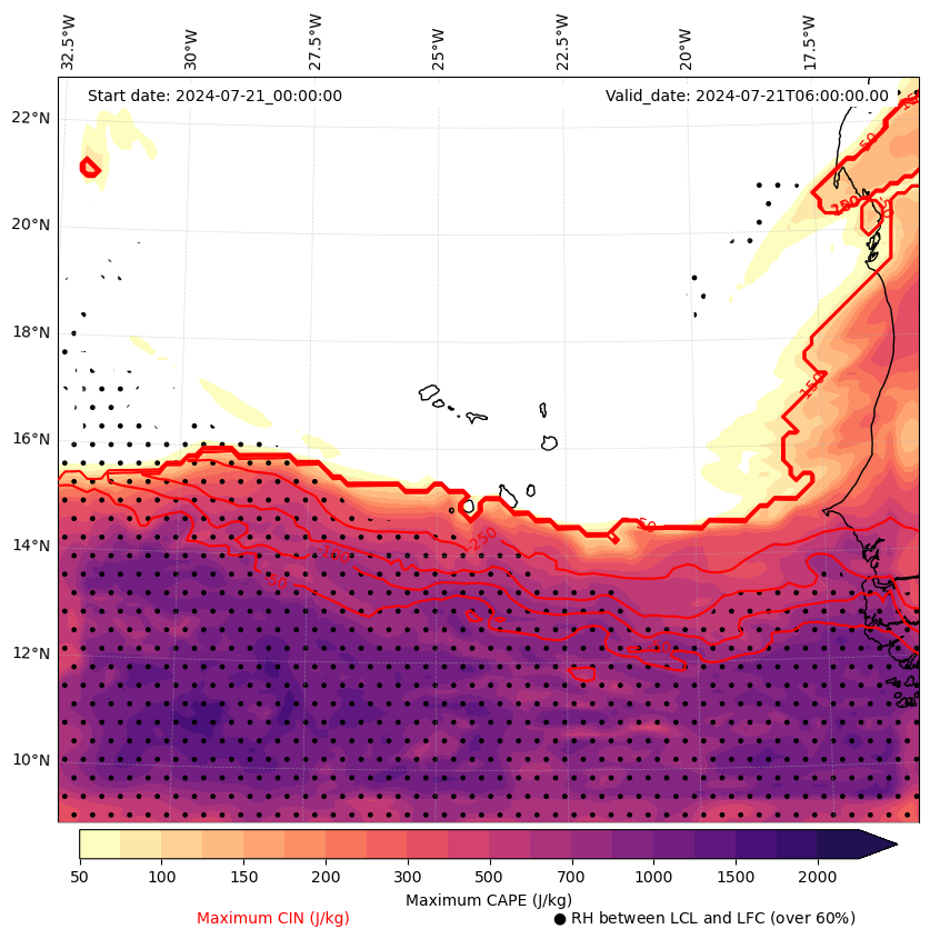 • Maximum CAPE (J/Kg)