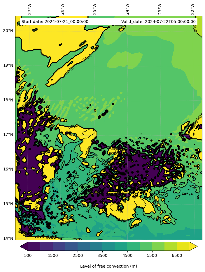 • Level of free convection (m)