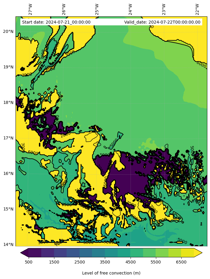 • Level of free convection (m)