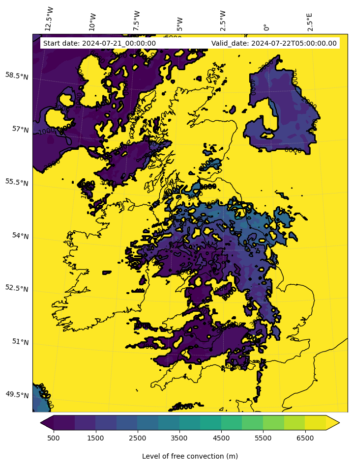 • Level of free convection (m)