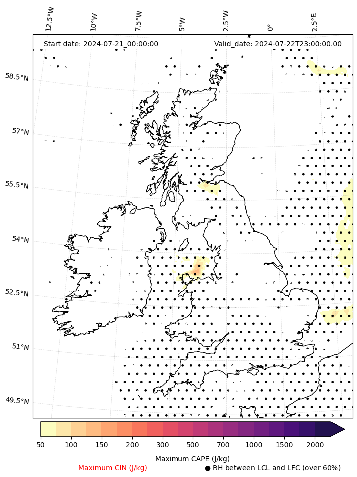 • Maximum CAPE (J/Kg)