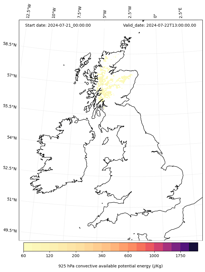 - Maximum CAPE (J/Kg)