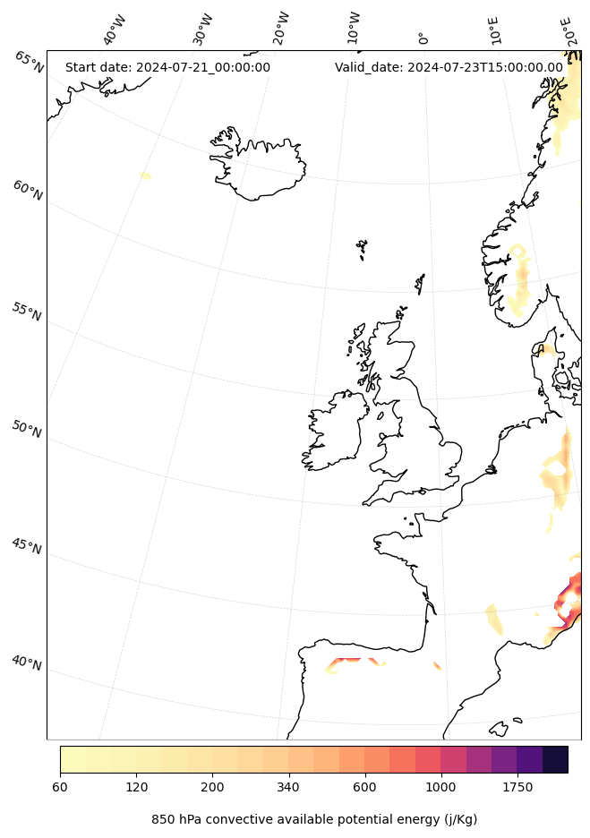 • Maximum CAPE (J/Kg)