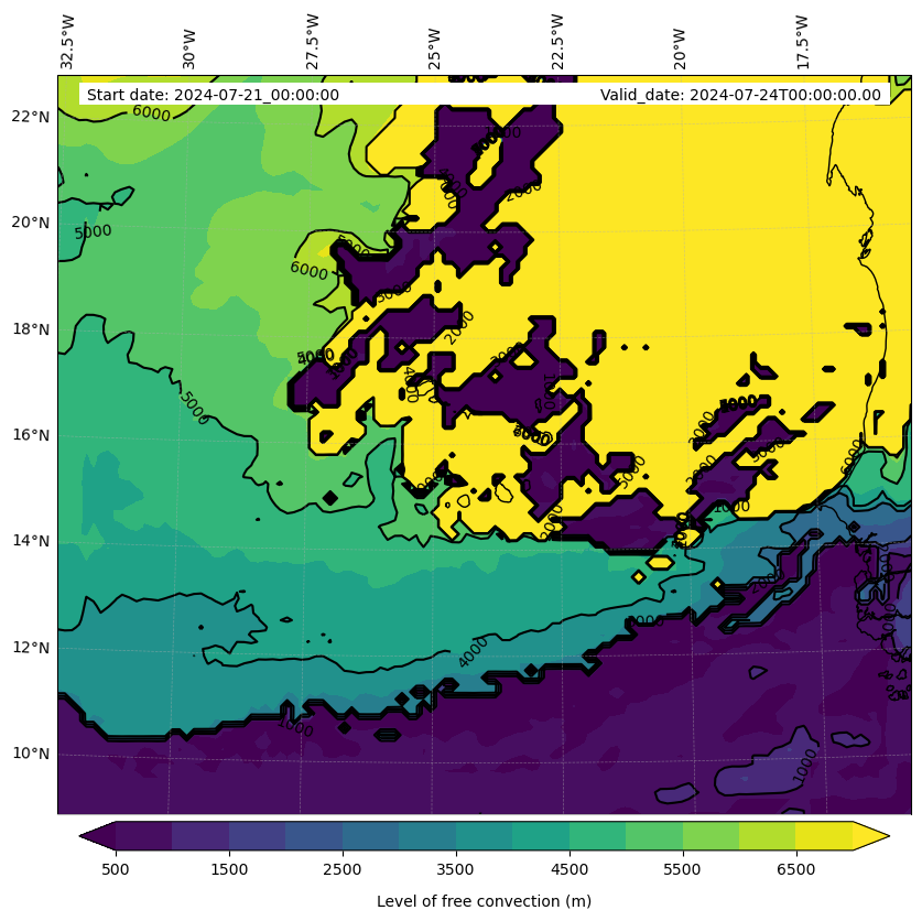 • Level of free convection (m)