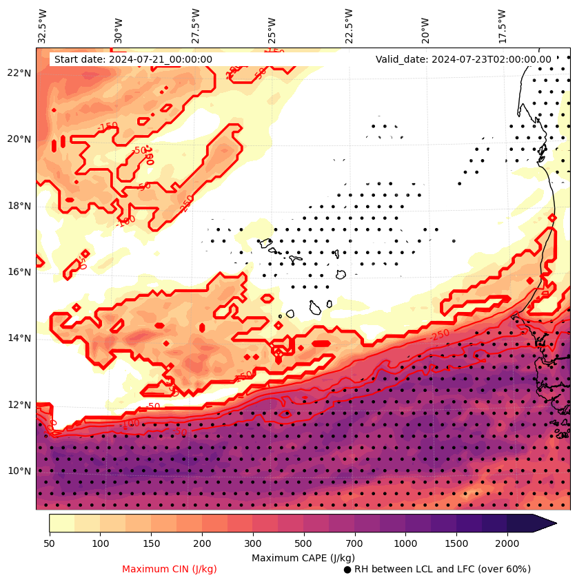 • Maximum CAPE (J/Kg)