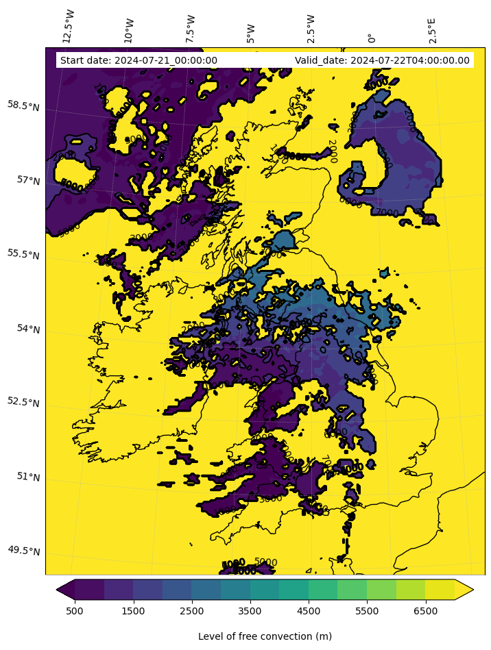• Level of free convection (m)