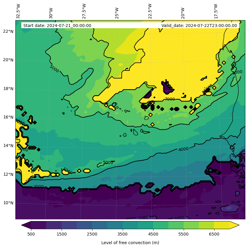 - Level of free convection (m)