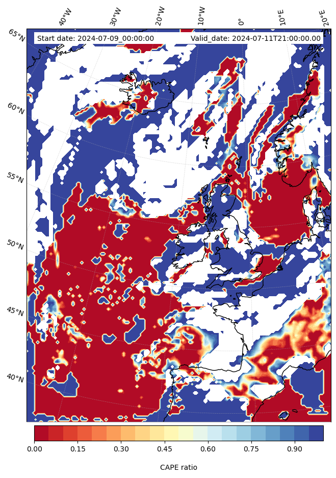 - Maximum CAPE (J/Kg)