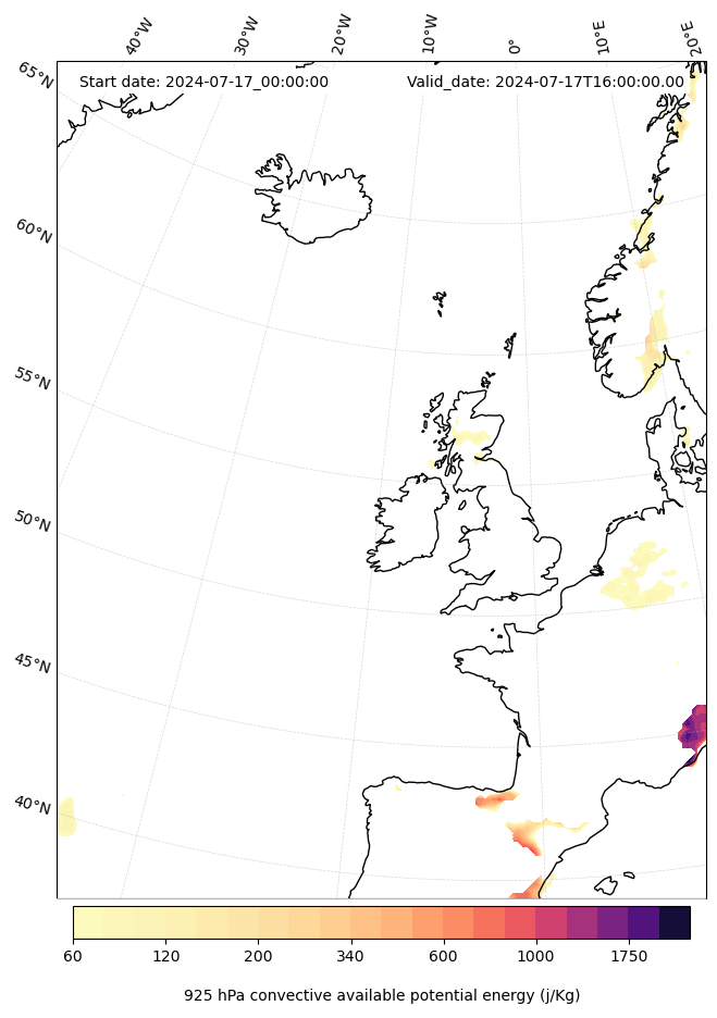 - Maximum CAPE (J/Kg)