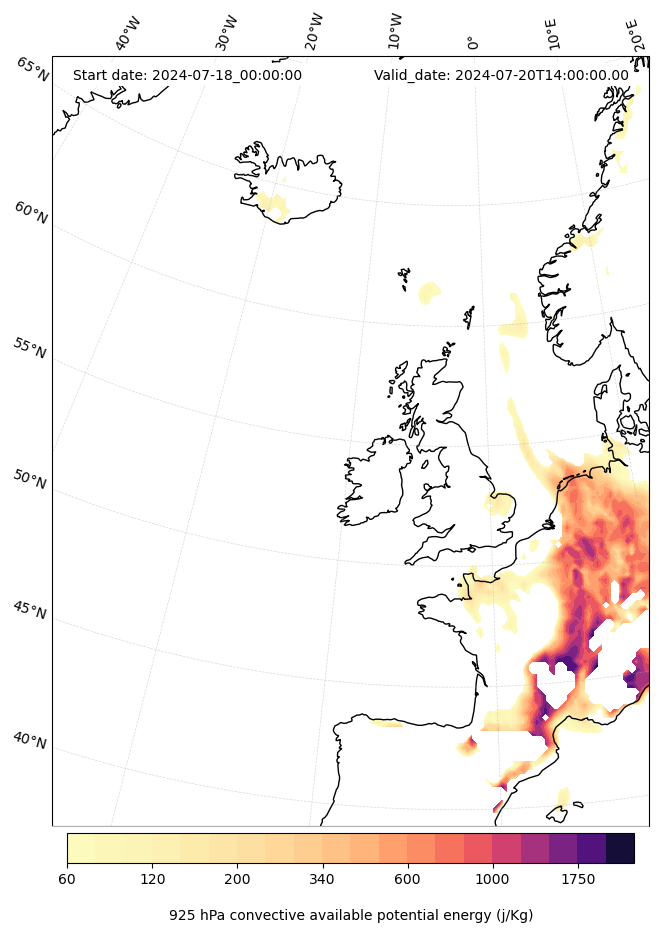 - Maximum CAPE (J/Kg)