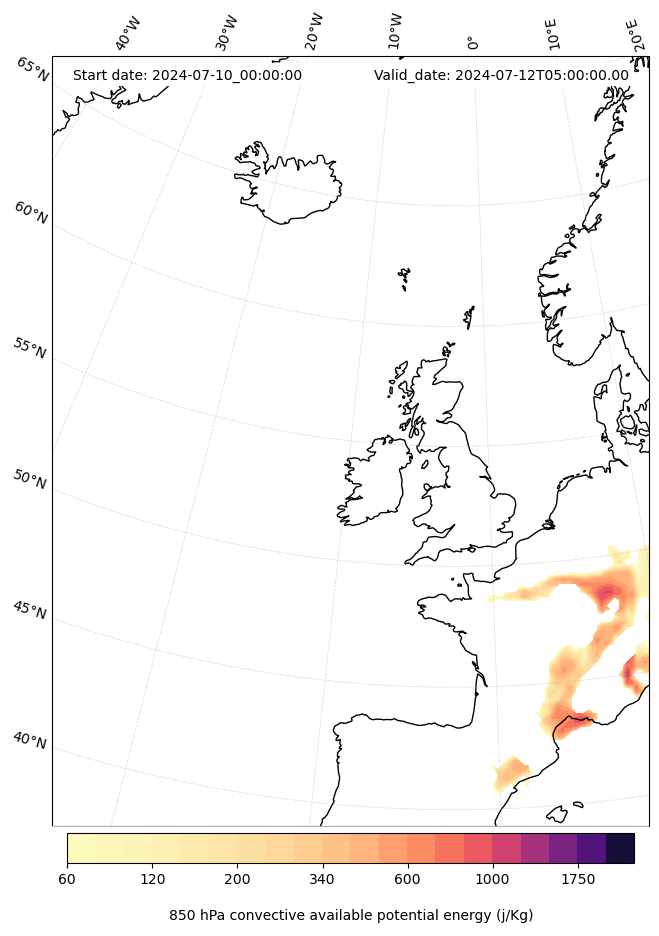 - Maximum CAPE (J/Kg)