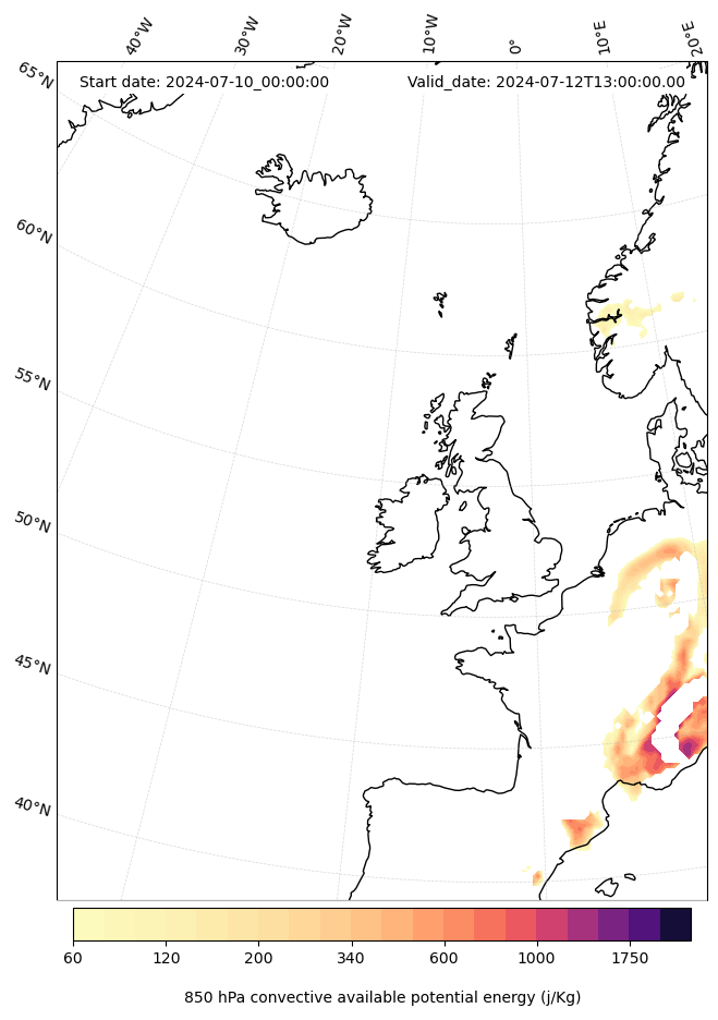 - Maximum CAPE (J/Kg)