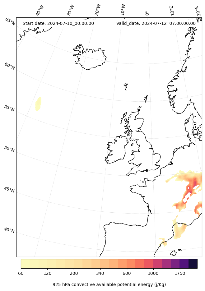 - Maximum CAPE (J/Kg)