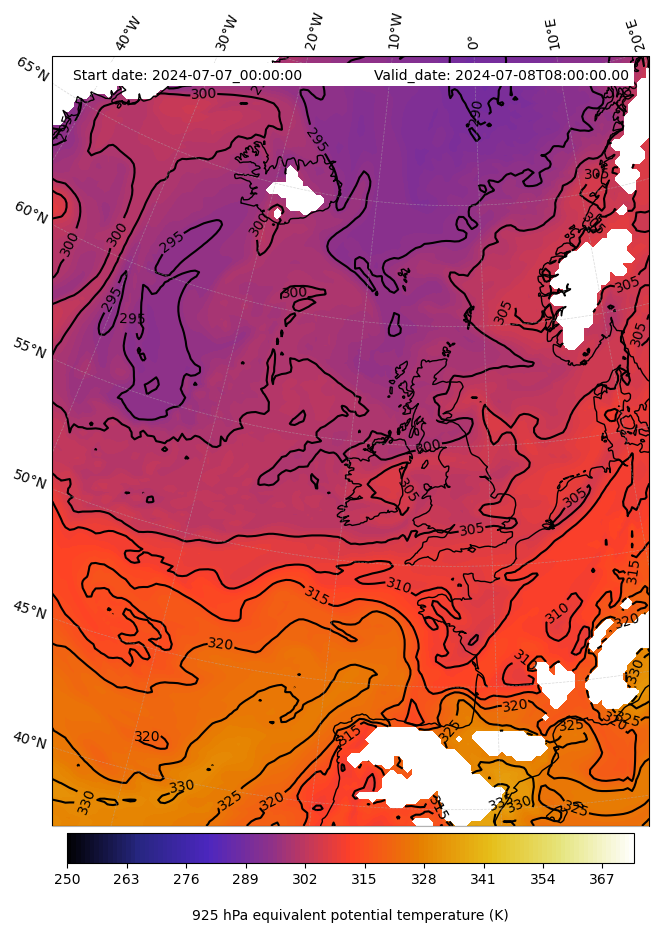 - Equivalent Potential Temperature (K)