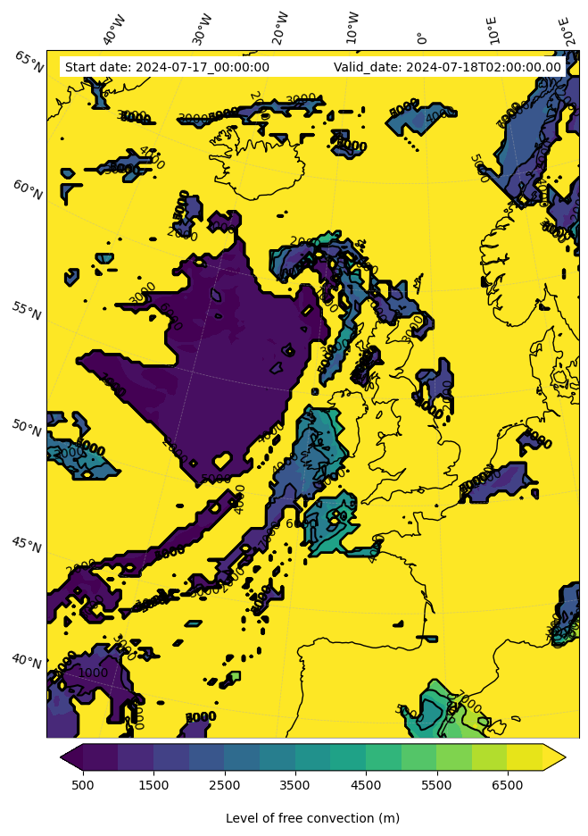 - Level of free convection (m)