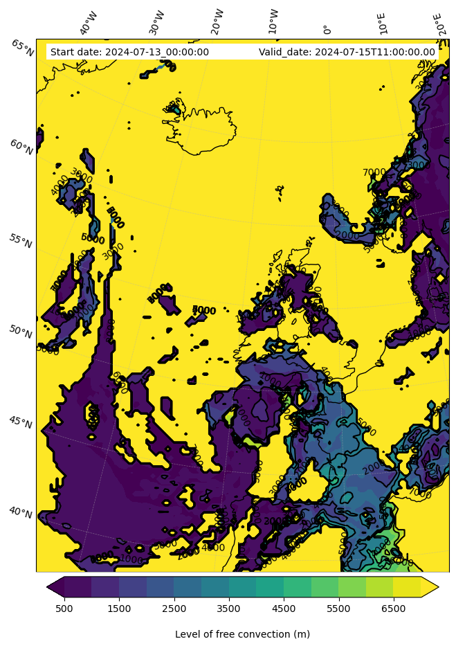 - Level of free convection (m)