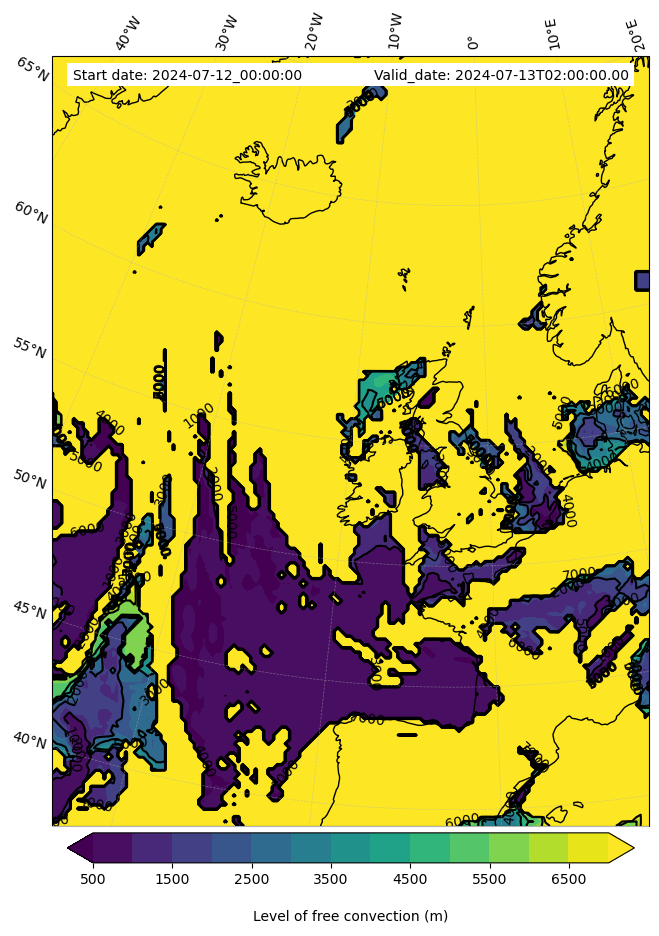 - Level of free convection (m)