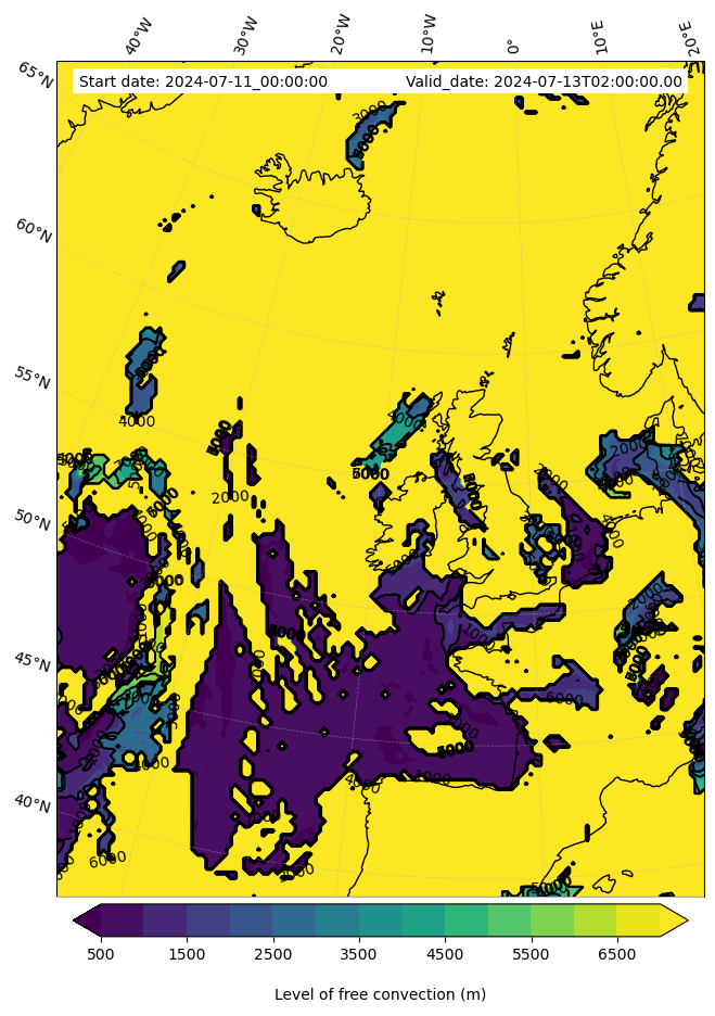 - Level of free convection (m)