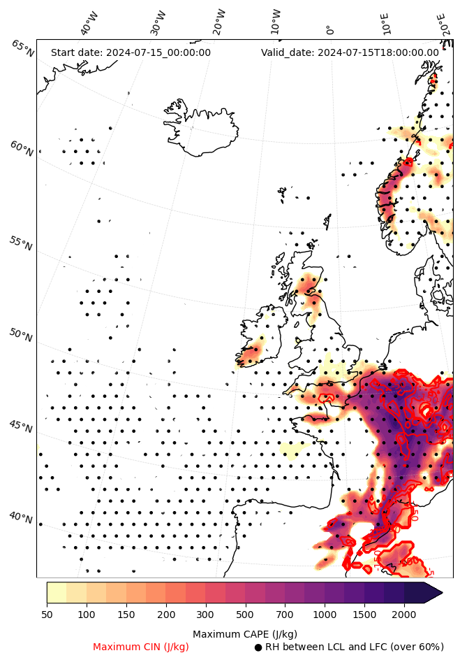 - Maximum CAPE (J/Kg)