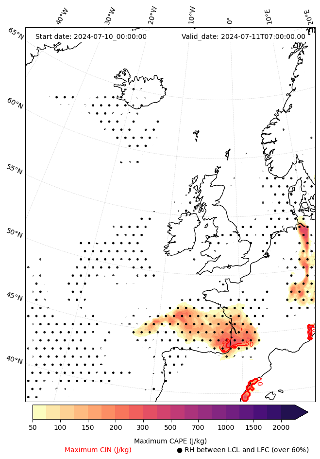 - Maximum CAPE (J/Kg)