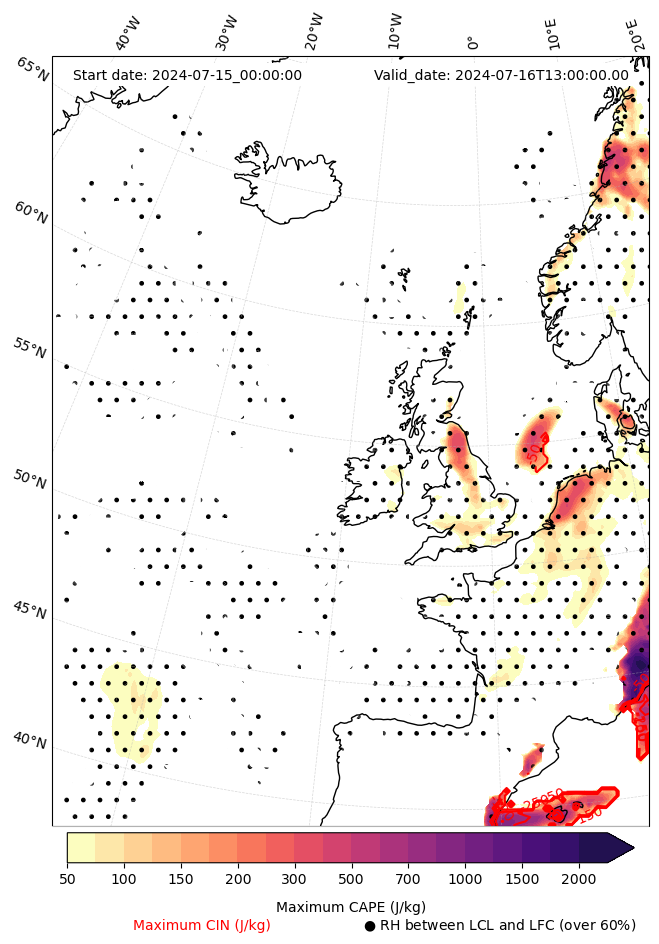- Maximum CAPE (J/Kg)
