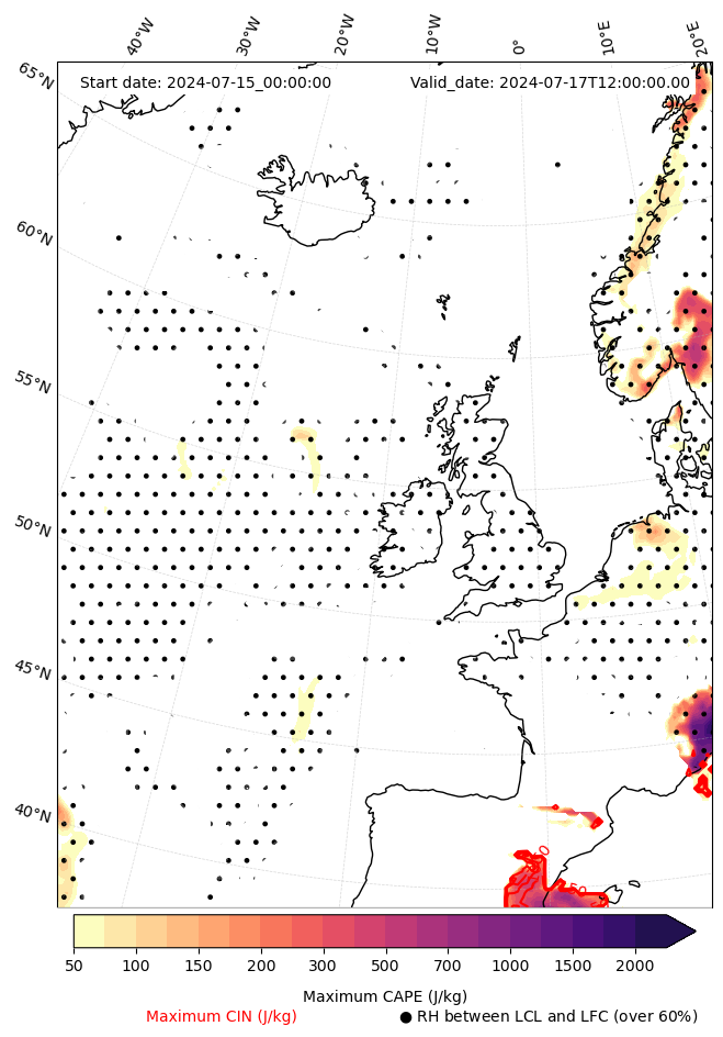 - Maximum CAPE (J/Kg)