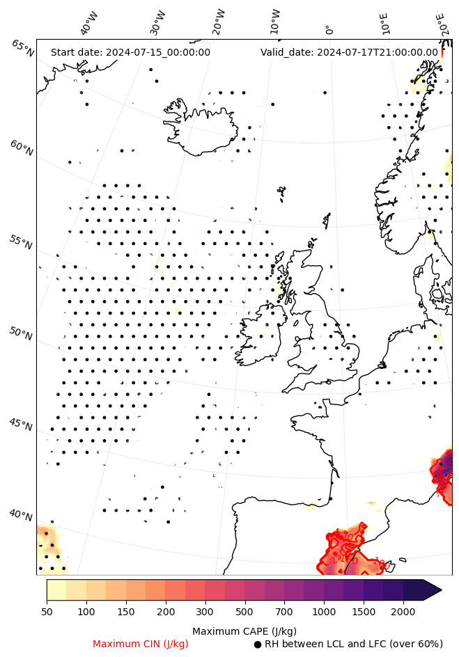 - Maximum CAPE (J/Kg)