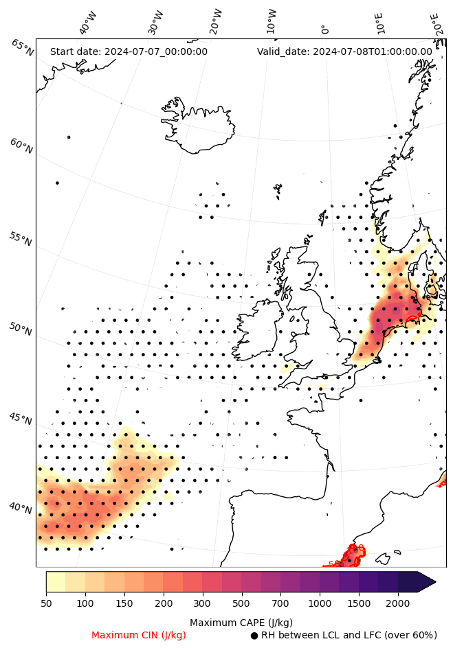 - Maximum CAPE (J/Kg)